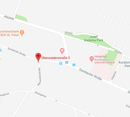 Liegt in Hernals, in unmittelbarer Nähe zum KH Göttlicher Heiland. Straßenbahnlinie 43, Station Dornbacher Straße. Kurzparkzone Mo-Fr. Zugang ebenerdig. Mehr